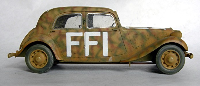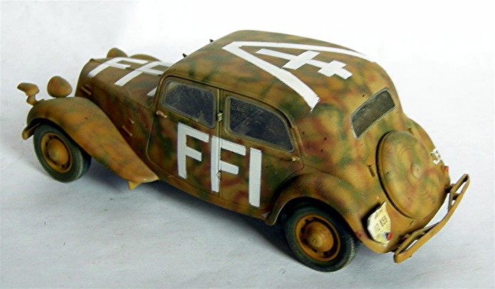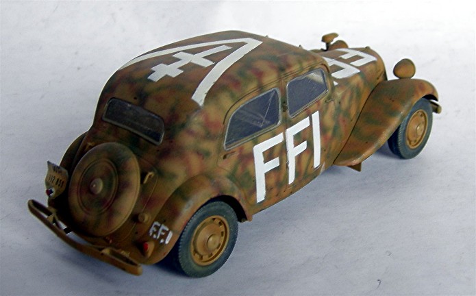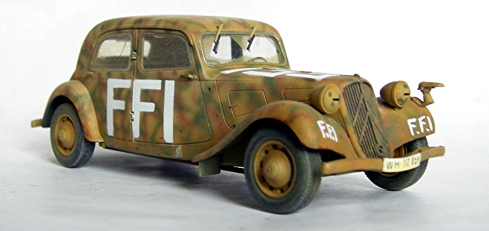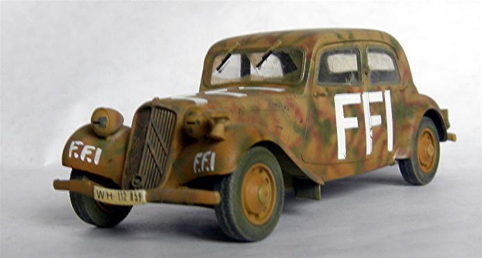 Eté 1944, Les armées alliées ont débarqué. La Résistance sort de l’ombre et ce sera souvent une « traction » civile ou récupérée sur l’occupant qui annoncera l’arrivée des libérateurs. Les « traction » arboraient d’immenses « Croix de Lorraine » , de « V » de la Victoire et de sigles FFI peints directement à la peinture blanche sur la carrosserie. Les occupants, armés de Sten, portaient un brassard bleu blanc rouge avec la mention FFI. Hélas, la « Traction » sera aussi le véhicule lié à la face sombre de la libération. Il servira à la chasse aux collaborateurs. Chasse qui sera aussi prétexte aux règlements de comptes personnels avec de nombreux abus. Nombre d’exécutions sommaires permettront à « certains résistants de la 25e heure » de justifier d’un passé de résistant et de s’octroyer une légitimité dans la libération du territoire.